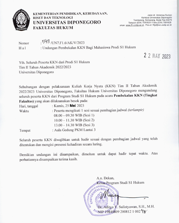 Bagi mahasiswa yang telah mendaftar KKN periode 2023 harap wajib mengikuti Pembekalan KKN yang diadakan