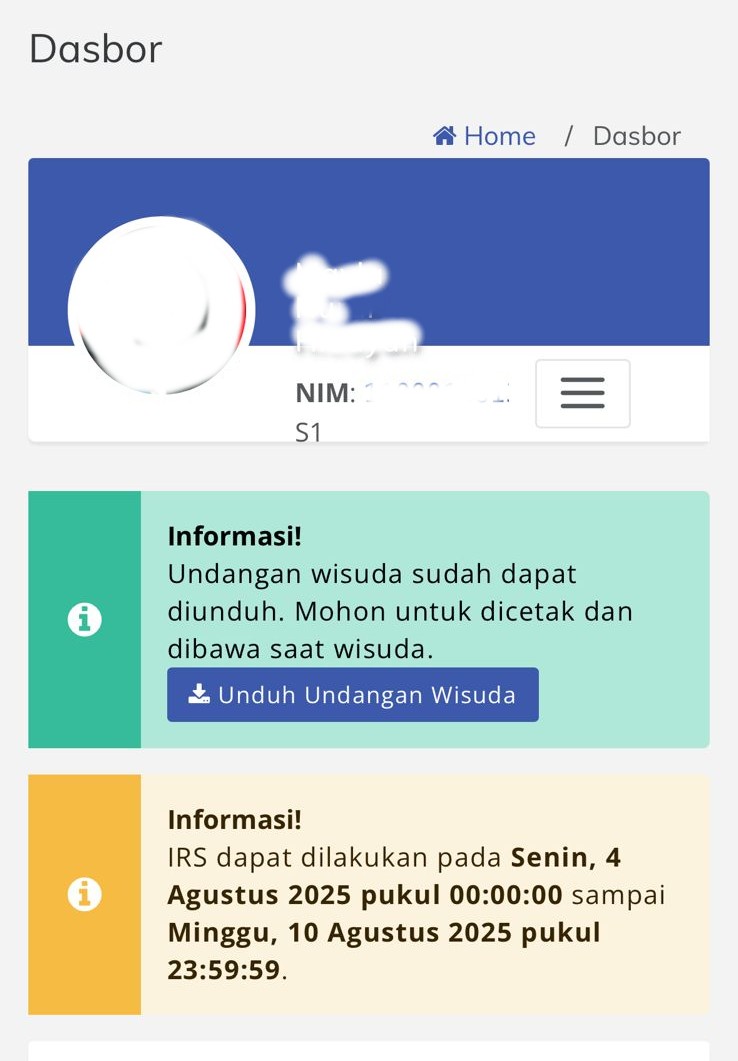 Diberitahukan kepada Wisudawan bahwa Pengunduhan Undangan Wisuda Universitas dapat di download lewat Aplikasi SIAP , di panel Informasi , seperti gambar berikut :