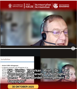 FH Undip held a Visiting Lecture with Prof. Dr. Paul Torremans (University of Nottingham) discussing “Trans-Border Infringement of Copyright” and important issues surrounding cross-border intellectual